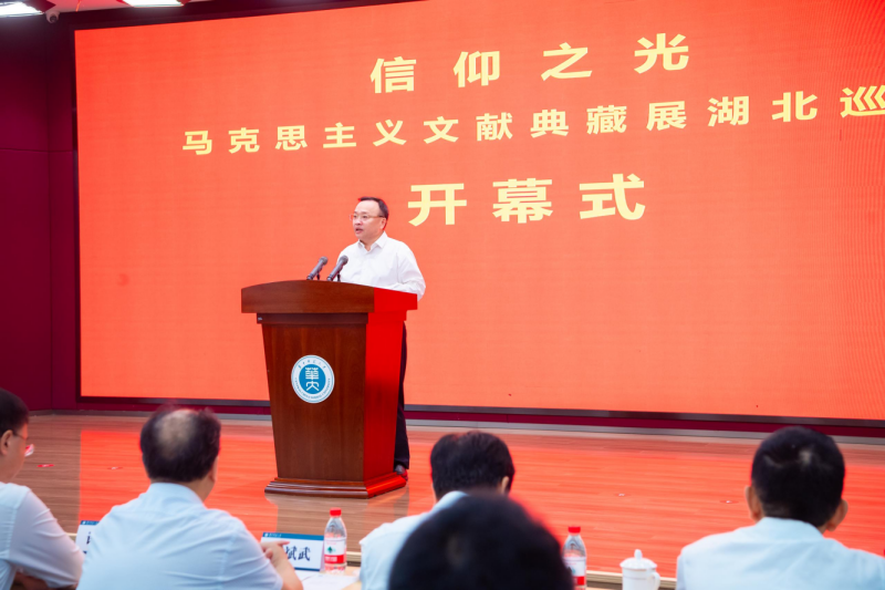 王均偉指出,黨的十八大以來,習近平總書記圍繞加強馬克思主義理論研究和建設,發表一系列重要論述,提出一系列明確要求。舉辦馬克思主義文獻典藏展并組織巡展,是認真貫徹落實習近平總書記重要指示精神和黨中央決策部署的重要舉措,也是服務黨和國家工作大局、更好宣傳黨的創新理論的務實探索。此次馬克思主義文獻典藏展來到紅色底蘊深厚、革命文脈綿長的湖北,既是對中國共產黨光輝歷史的深情回望與崇高致敬,也是對中國共產黨人信仰信念的堅定傳承和鄭重宣示,具有深刻的政治意義、歷史意義和教育意義。
