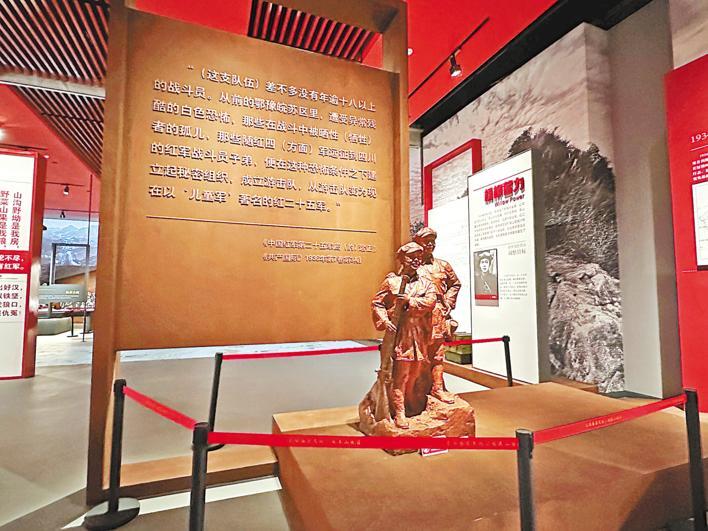 紅二十五軍長征集結革命歷史展一角的小紅軍戰士塑像,紅二十五軍以“兒童軍”著名。 (湖北日報全媒記者 龔雪 攝)